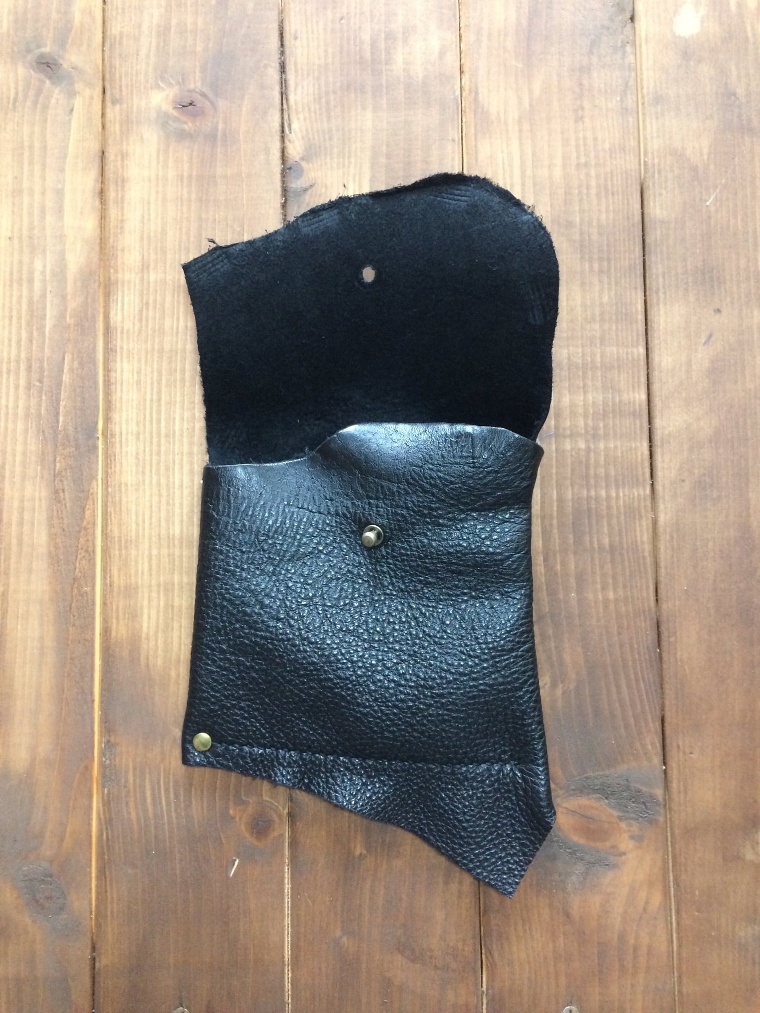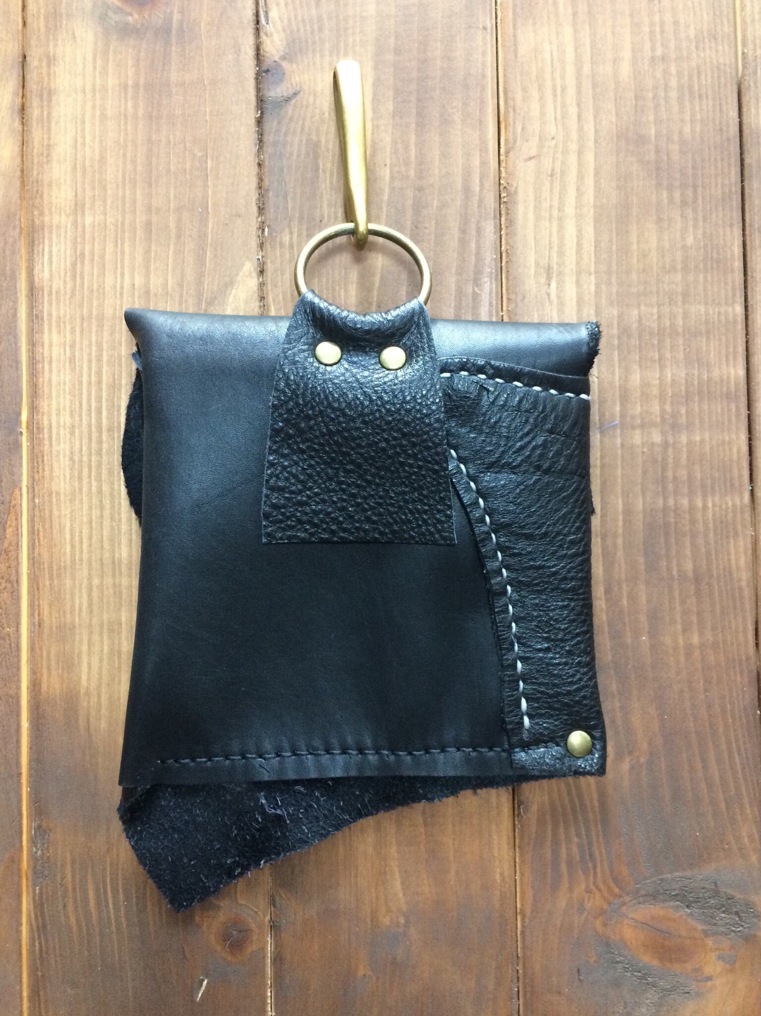 黒の牛革シュリンクレザーとスムーズレザーを手縫いで仕上げた逸品です。