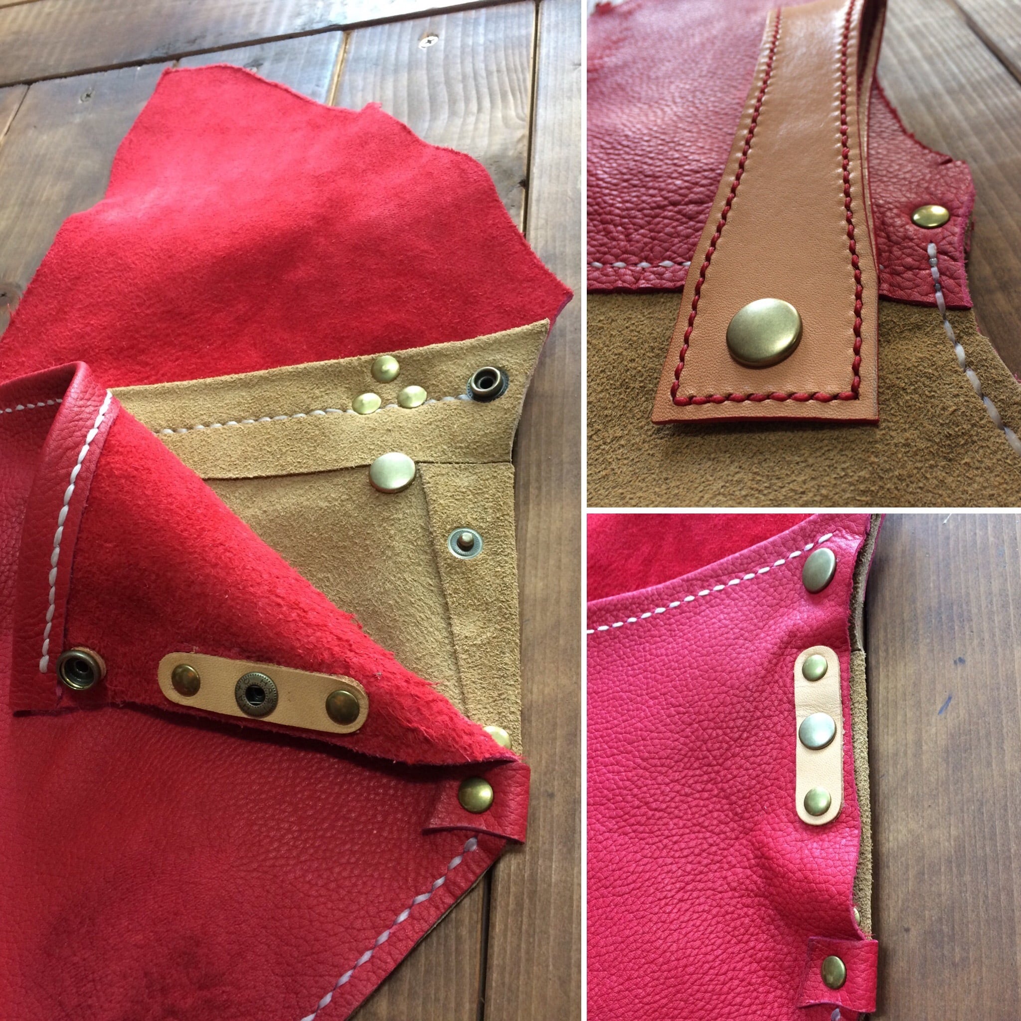 真っ赤なシュリンクとライトブラウンベロア‼︎アクセントにナチュラルレザーを使いました。