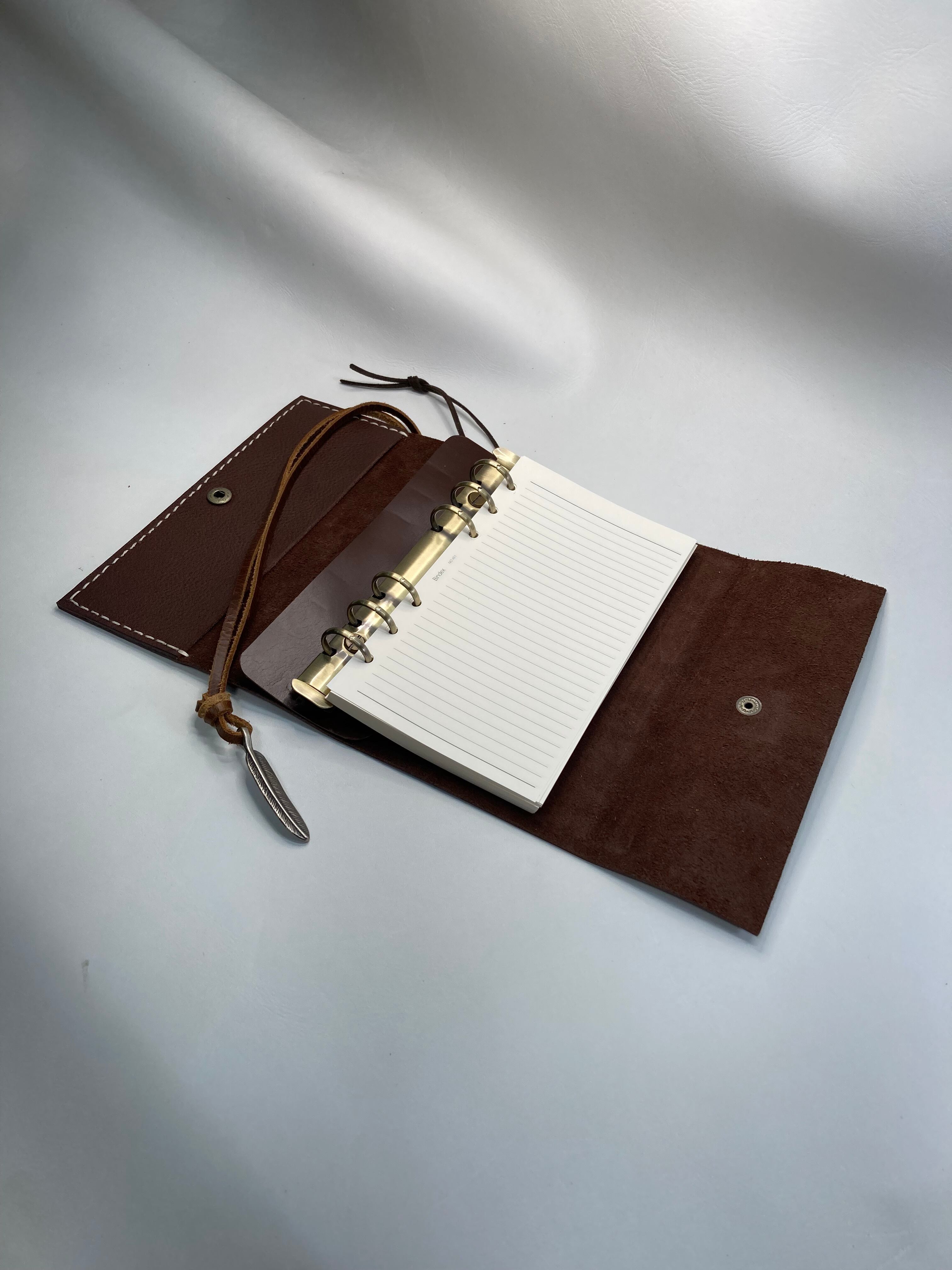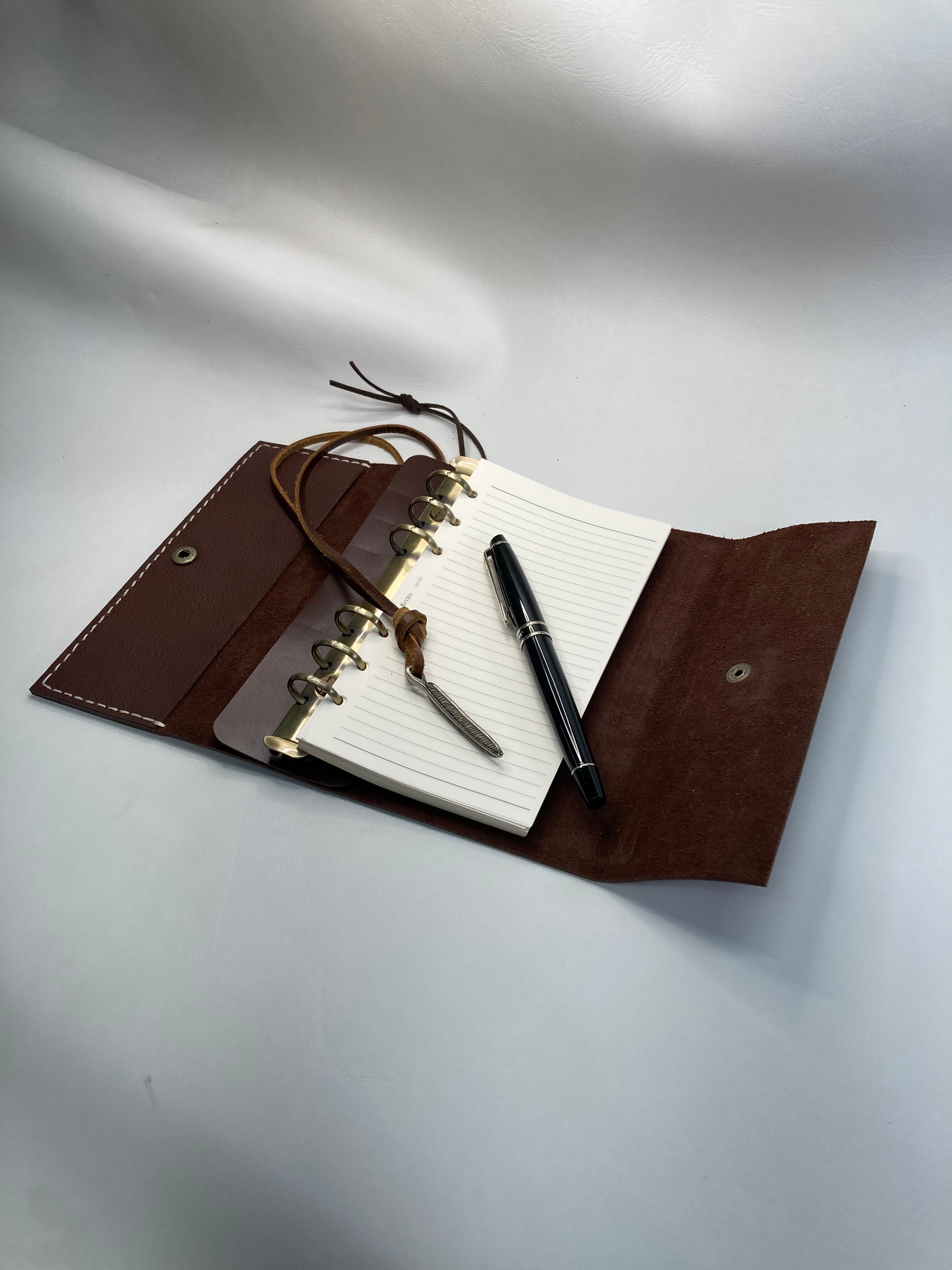 忙しいビジネスパーソンにおすすめのシステム手帳A6。高品質な本革を使用したシンプルなデザインで、上品さと実用性を兼ね備えています。オフィスでの会議や外出先でのスケジュール管理に最適なサイズです。